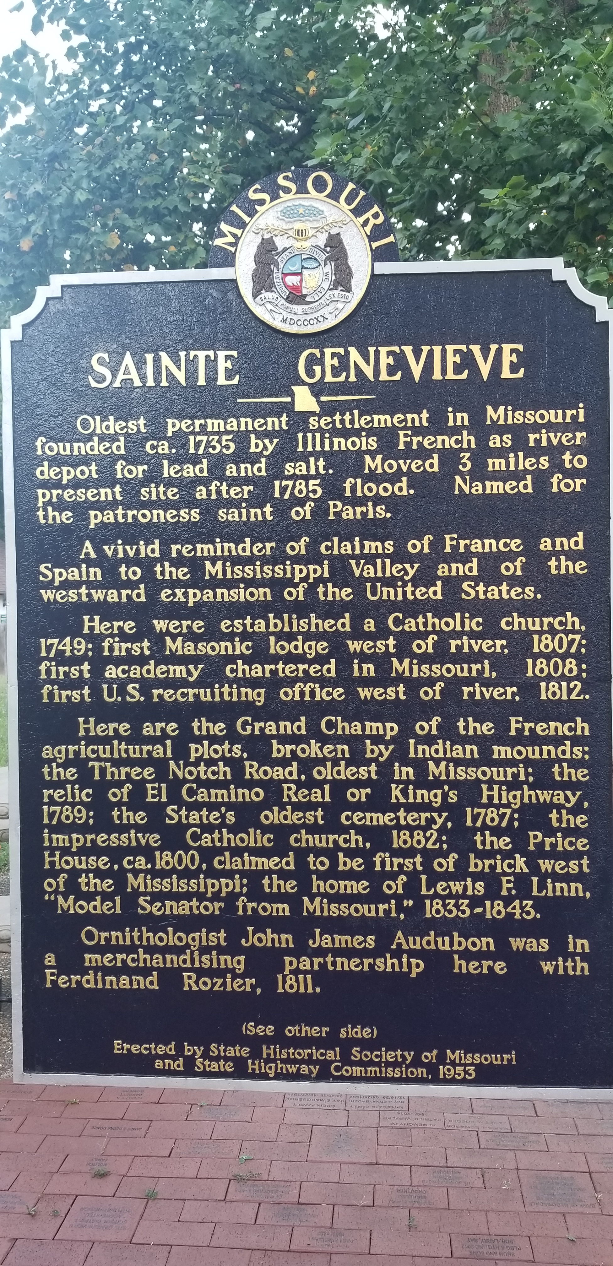 I had heard of Sainte Genevieve while researching the trip and really wanted to stop and visit. Towards the end of the day I reached a shallow, narrow inlet my map indicated went to a boat ramp. I followed it in a quarter of a mile to the ramp. A thunderstorm was rumbling and flashing just north of me and I hoped to wait it out if it hit.