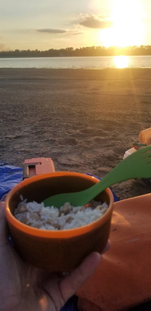 I finally roll out of the tent around 7:00. I have been waking up at five and been on the river by 6:25, with sunrise just before 7:00. I didn’t sleep much last night thinking about family and worrying unnecessarily that my boat would float away.