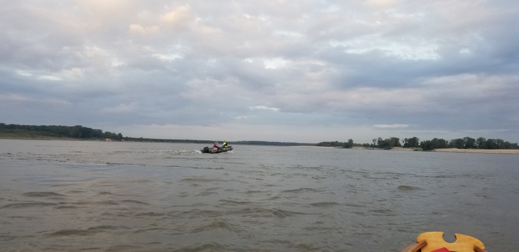 Two guys in a small metal boat came over from fishing near the shore to talk. I must be a curious sight to some people. They both had gray beards and were wearing PFDs. (I was not wearing mine) In a slow southern drawl they asked questions. Yesterday two other guys came over to check me out but I could barely make out what they were saying. These two I understood completely. They came across as southern gentlemen. Not Col. Sanders but more like Atticus Finch. They were different then the good ol’ boys I usually meet in fishing boats. (not that there’s anything wrong with that) When they left one said ‘We are retired but maybe that’s something we could do when we get older.” and laughed. I liked them immediately.
