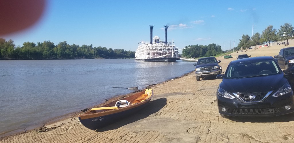 At 6:30 in the morning, going down to check on my boat, I was greeted by a big, stern wheel paddle boat. It made me smile. Then I see Little Joy and I can see the tarp covering my gear is torn back. Crap. A plastic bin with all the food plus my Jetboil stove, fuel and little pot and pan set are gone. Crap.