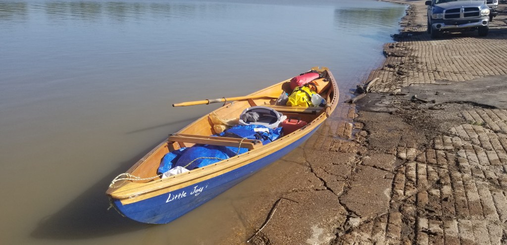 The boat ramp is packed with maybe 15 truckes and trailers as I set off on a Saturday morning. Some people come by and talk, a few say nice boat and others just give me a look of amusement as they put in their bass boats with twin outboard engines. Little Joy feels heavy and sluggish like rowing through mud. 14 gallons of water onboard will do that.