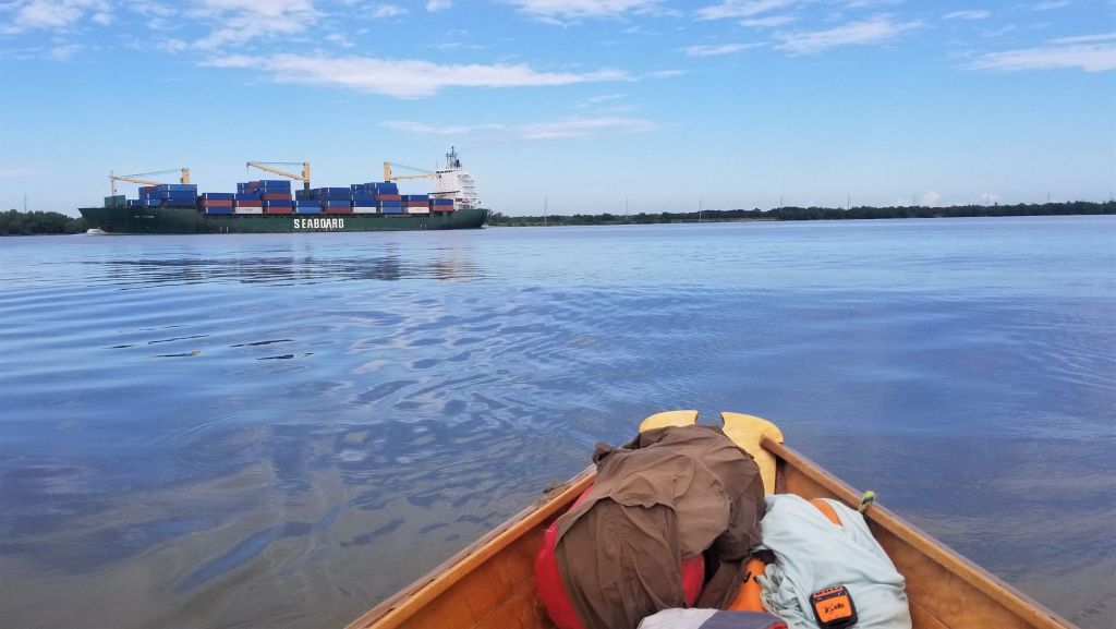 Eighty one miles to the official end of the Mississippi River. In Mark Twain’s time I would be in the Gulf of Mexico. However, now, the river is artificially maintained with a 45 foot deep shipping channel by levees and jetties far out into the gulf. I can go all the way to the end but I would have nowhere to go after that. So I plan to stop at the last town in Louisiana, Venice, at mile marker 10. If I can do 45 miles today that would leave me 26 miles tomorrow to finish.