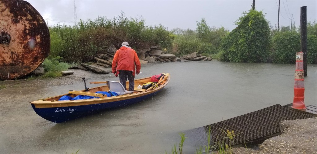 “David!” I hear the familiar voice over the rain and wind that continued sporadically through early afternoon. It was Lijun standing by the edge of the river. I made it over to a small hidden boat ramp where a saw my wife for the first time in a month. She was looking as beautiful as ever in her orange raincoat and I kissed her briefly but did not hug her. I still have about 13 miles left. I am exhausted from the wind and the rain and the waves and I am unsure I can finish today. I’ll save the hug for when I do.